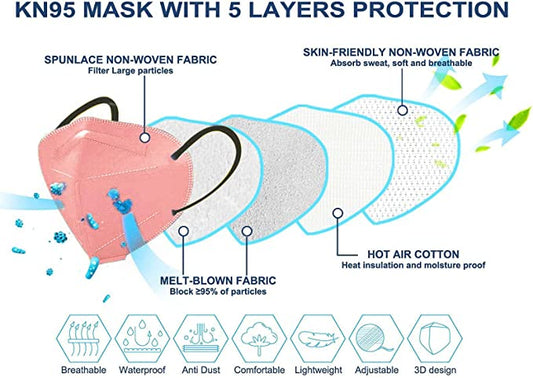 HUHETA 100 PCs Individually Wrapped KN95 Face Masks 5-Ply Breathable Protective KN95 Mask Morandi Multi color